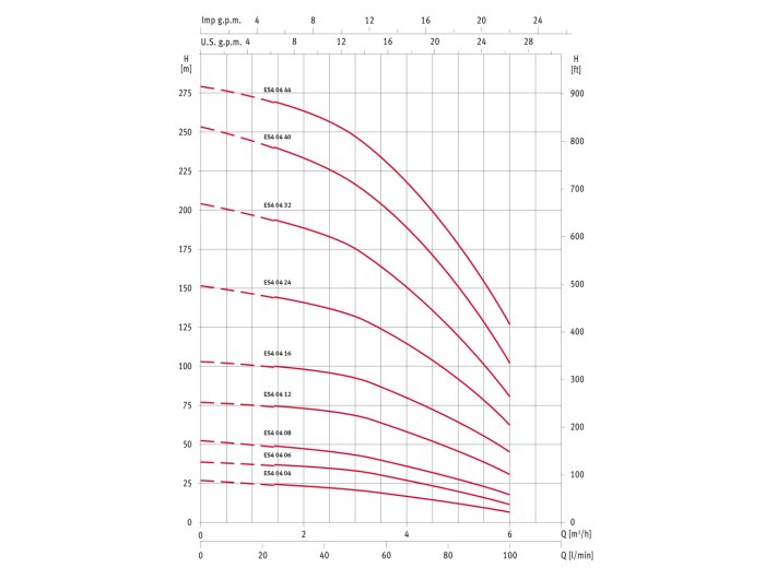 Submersible pumps (hydraulic part only) for 4" wells, which can be coupled to 4" submersible motors with NEMA4 type flange/joint